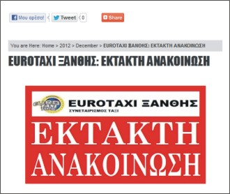 Με μια έκτακτη ανακοίνωση, μέσα από το blog του, ο συνεταιρισμός των Ραδιο Ταξί Ξάνθης απευθύνει έκκληση στους οδηγούς των ΤΑΞΙ όταν αποβιβάζουν πελάτες τις μεταμεσονύχτιες ώρες, να περιμένουν μέχρι να μπουν μέσα στις οικοδομές και μετά να αποχωρούν !