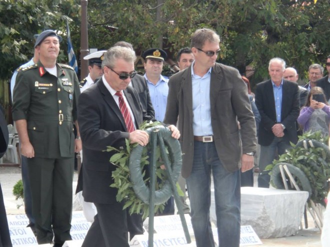 Στο σύντομο χαιρετισμό του ο Αντιπεριφερειάρχης Κώστας Ζαγναφέρης επεσήμανε, μεταξύ άλλων, ότι 70 χρόνια μετά τη σφαγή του Καρυοφύτου οι άνθρωποι της περιοχής περιμένουν ακόμη ένα «συγνώμη» για όσα συνέβησαν.