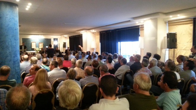 Το κοινό που γέμισε ασφυκτικά το ξενοδοχείο Νατάσα, ενημέρωσαν ο Γενικός Γραμματέας του Υπουργείου Αγροτική Ανάπτυξης Δημήτρης Μελάς (ο οποίος σε δηλώσεις του ανέφερε την κάθετα αρνητική θέση της ελληνικής πλευράς για τη χρήση γενετικά τροποποιημένων οργανισμών, καταθέοντας το παράδειγμα της σόγιας για την οποία επιχειρείται αύξηση της παραγωγής χωρίς μεταλλαγμένα) ο Αντιπρόεδρος της ΠΑΣΕΓΕΣ Σκιαδάς Κωνσταντίνος και ο Γενικός Διευθυντής της ΠΑΣΕΓΕΣ Ιωάννης Κολυβάς.