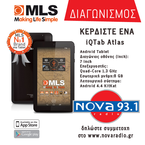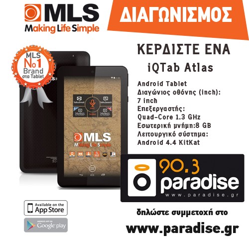 Δύο  tablet ΜLS  7 ιντσών  IQ Tab Atlas προσφέρει ο διαγωνισμός του paradise 903 και του Nova 93,1 .