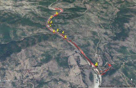 Στο χάρτη φαίνονται οι θέσεις των νεκρών ζώων. Στο σημείο με τα δηλητηριασμένα δολώματα ο Κίκο εντόπισε κόκκαλα, πιθανώς με φάρμακο, που στάλθηκαν για τοξικολογική ανάλυση στο Τμήμα Κτηνιατρικής Νομού Ροδόπης.