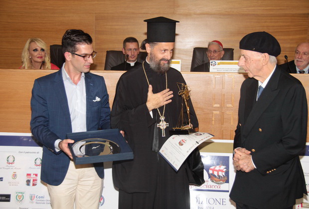 Διέπρεψαν τα ελληνικά βραβεία στην λαμπρή ετήσια τελετή των Διεθνών Βραβείων Giuseppe Sciacca, το Σάββατο 8 Νοεμβρίου 2014 που πραγματοποιήθηκε στην Aula Magna στο Ποντιφικό Πανεπιστήμιο Urbaniana στο Βατικανό. O Κυβερνήτης Leonardo Sacco, Εθνικός Αντιπρόεδρος Κοινωνικής Πρόνοιας της Ιταλίας παρέδωσε το υπέροχο γλυπτό που φιλοτέχνησε ο γλύπτης Γιάννης Μπάρδης με σύμβολο την οικουμενικότητα του Οδυσσέα στον Καθηγητή Παιδοκαρδιοχειρουργικής του Πανεπιστημίου της Γενεύης, Αυξέντιο Καλαγκό για την εξαίρετη πορεία του στο χώρο της Ιατρικής Επιστήμης και το τεράστιο εθελοντικό του έργο.