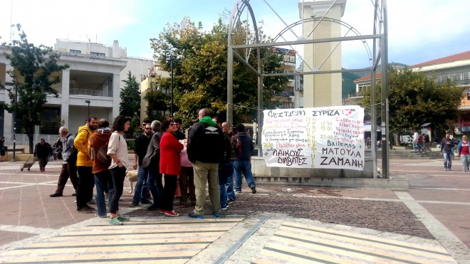 [youtube id=”UyNRBiDILB0″ align=”left” mode=”normal” maxwidth=”330″]Υπήρξε έντονη λογομαχία μεταξύ του Γραμματέα και του Βουλευτή με τον αρμόδιο Αντιδήμαρχο και τα μέλη δεν κατέβασαν το πανό, αναφέροντας ότι εκτελούν συνταγματικά κατοχυρωμένο δικαίωμα, ότι δεν υπάρχει κάποια απαγόρευση ανάρτησης ή κάποια απόφαση για να απομακρυνθεί.