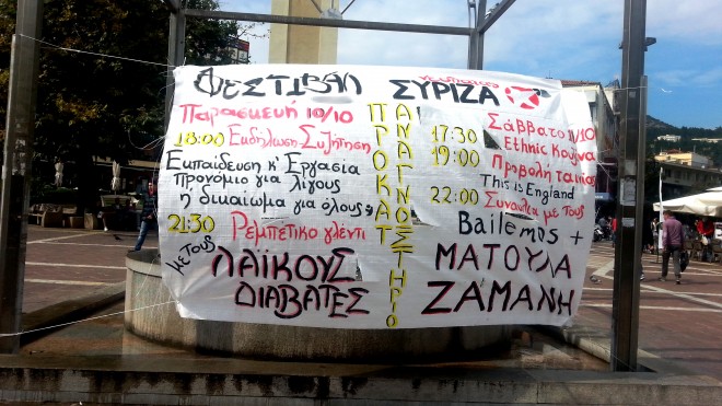 Για την ιστορία, το φεστιβάλ της Νεολαίας ΣΥΡΙΖΑ γίνεται στις 10-11 Οκτωβρίου στο Αμφιθέατρο ΠΡΟΚΑΤ με συναυλίες, ομιλίες, συζητήσεις και άλλες εκδηλώσεις.
