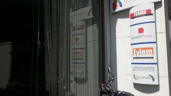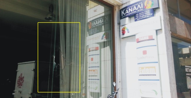 Άγνωστοι δράστες πέταξαν τούβλα, τυλιγμένα σε νάυλον, εναντίον της τζαμαρίας με αποτέλεσμα να σπάσει και να προκληθούν υλικές ζημιές στο τζάμι και στο εσωτερικό των γραφείων του τηλεοπτικού σταθμού.