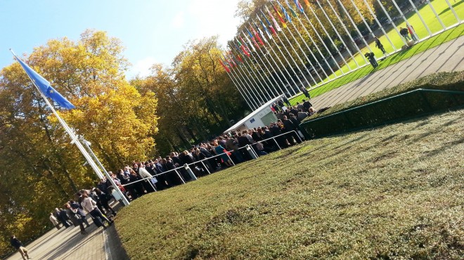 Στη διάρκεια της παραμονής τους στο Στρασβούργο, τα μέλη της ελληνικής αποστολής συναντήθηκαν και είχαν συζήτηση στο Ευρωπαϊκό Δικαστήριο Ανθρωπίνων Δικαιωμάτων με τον Έλληνα δικαστή Λίνο-Αλέξανδρο Σισιλιάνο για τις ελληνικές υποθέσεις που απασχολούν το Ευρωπαϊκό Δικαστήριο με έμφαση σε θέματα όπως η ξενοφοβία και ο ρατσισμός, οι συνθήκες κράτησης στην Ελλάδα, τα θέματα των μεταναστών,η καθυστέρηση απονομής δικαιοσύνης, το κούρεμα των ελληνικών ομολόγων κα καθώς και την πορεία εφαρμογης τους από την ελληνική έννομη τάξη. Ιδιαίτερα τέθηκαν από τον Βουλευτή του ΣΥΡΙΖΑ τα θέματα των γερμανικών αποζημιώσεων και η αξιοπιστία της ελληνικής εκπροσώπησης.