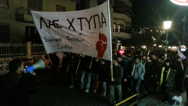 Περίπου 700 άτομα συμμετείχαν στην πορεία που οργανώθηκε από το Σύλλογο Φοιτητών της Πολυτεχνικής Σχολής, αριθμός που αγγίζει σχεδόν το μέγεθος της περυσινής πορείας, σύμφωνα με τις εκτιμήσεις των διοργανωτών. Συμμμετείχαν φοιτητές, το πανό των οποίων προηγήθηκε στην πορεία, χωρίς διακριτικά των παρατάξεων, το μπλοκ του ΣΥΡΙΖΑ, την Λαικής Αντίστασης, της ΚΕΕΡΦΑ, της ΕΛΜΕ Ξάνθης, διάφορες συλλογικότητες και μεμονωμένοι πολίτες.