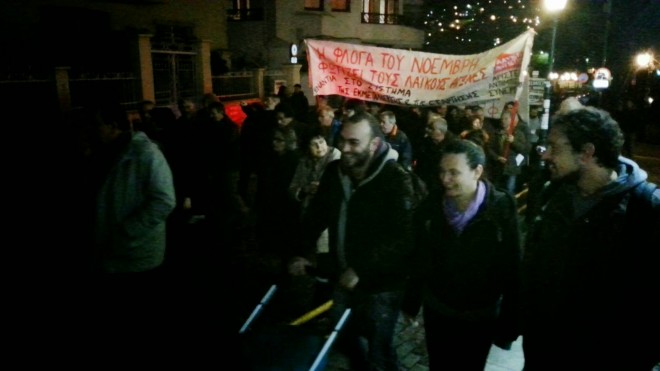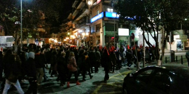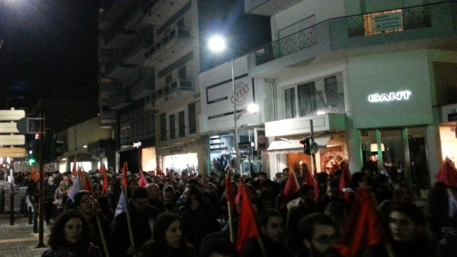 Η πορεία κινήθηκε από το ΠΡΟΚΑΤ στη συνήθη διαδομή μέσω της Κεντρικής Πλατείας στην Πλατεία Μπαλτατζής, στην Πλατεία Ελευθερίας, στην 28η Οκτωβρίου προς Κεντρική Πλατεία και πίσω στο Πολυτεχνείο. Τα συνθήματα που κυριάρχησαν εκτός από το αντικυβερνητικό περιεχόμενο είχαν σαν στόχο το φασισμό αλλά και τα πρόσφατα περιστατικά καταστολής στη Νομική της Αθήνας.