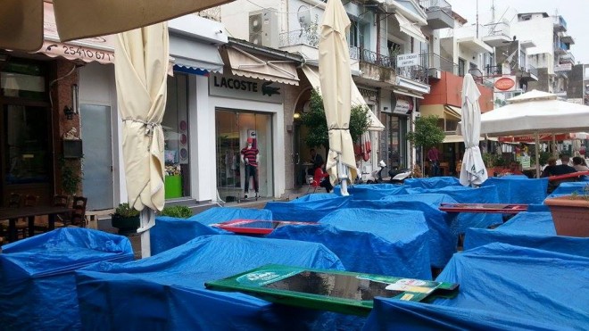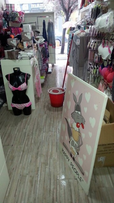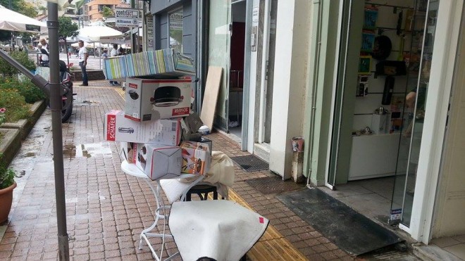 Οι ιδιοκτήτες των καταστημάτων εστίασης, ρουχισμού και ηλεκτρικών που βρίσκονται κοντά στην Κεντρική Πλατεία, διαπίστωσαν το πρωί της Τετάρτης, ότι τα καταστήματά τους είχαν πλημμυρίσει. Τόσο στα ισόγεια, όσο , κυρίως, στα υπόγεια των Καταστημάτων είχαν μπει νερά που κατέβηκαν από την οδό Βόγδου προς την Κεντρική Πλατεία.