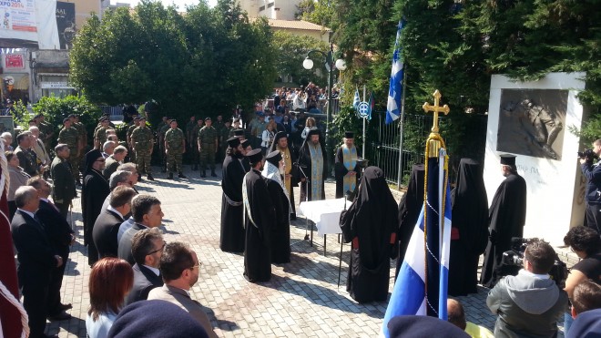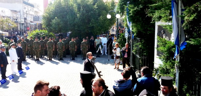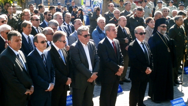 Την Κυβέρνηση εκπροσώπησε ο Υφυπουργός Εσωτερικών Γιώργος Ντόλιος ενώ παραβρέθηκε σύσσωμη η τοπική ηγεσία, μεταξύ άλλων ο Δήμαρχος Χ. Δημαρχόπουλος, ο Αντιπεριφερειάρχης Κ. Ζαγναφέρης, οι βουλευτές Χ.Ζεϊμπέκ – Α. Κοντός – Δ. Σαλτούρος, ο Διοικητής του Δ’ΣΣ Αντιστράτηγος Χ. Χαλκίδης, ο Εισαγγελέας Πρωτοδικών Ν. Καραμολέγκος, ο Αν. Πρύτανης Π. Μπότσαρης, η τοπική ηγεσία των Σωμάτων Ασφαλείας, Δήμαρχοι, Δημοτικοί και Περιφερειακοί Σύμβουλοι, ο Περιφερειακός Διευθυντής Εκπαίδευσης Σ. Μελισσόπουλος, και οι παράγοντες της εκπαίδευσης, πρώην βουλευτές, ο τέως Δήμαρχος και ο τέως Αντιπεριφερειάρχης, εκπρόσωποι φορέων και αντιστασιακών οργανώσεων, μέλη εθελοντικών οργανώσεων και αρκετός κόσμος.