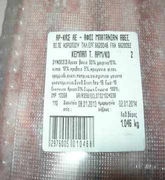 1) Κατεψυγμένο «Κεμπάπ τύπου Αρμένικο», με εμπορική ονομασία “ΑΡ-ΚΑΣ”, σε συσκευασία του 1kg, παρασκευαστής – συσκευαστής «Αφοί Μπατανιάν, ΒΙ.ΠΕ. Κορωπίου», το οποίο διατίθετο από το σούπερ μάρκετ «ΜΕΤΡΟ ΑΒΕΕ, Υποκατάστημα της Καβάλας».
