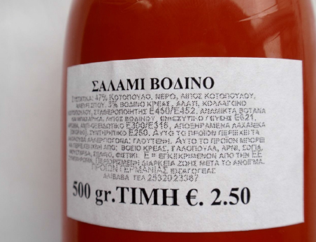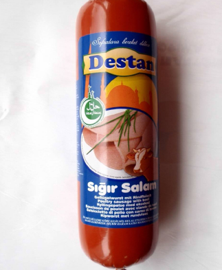 2) Σαλάμι Βοδινό με εμπορική ονομασία “Destan”, σε συσκευασία των 500g, που παρασκευάσθηκε από την Ολλανδική εταιρεία DEMKA GmbH, με αριθμό έγκρισης NL 77 EG, το οποίο διατίθετο από το παντοπωλείο «Γιακούπ Γιακούπ, Φίλυρα Σάππων, Ροδόπης».