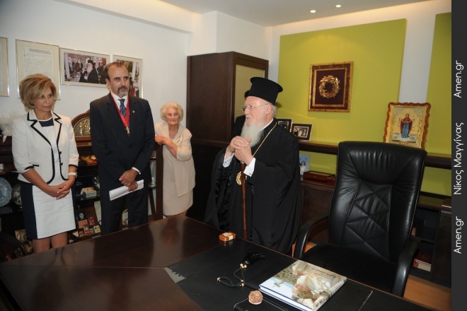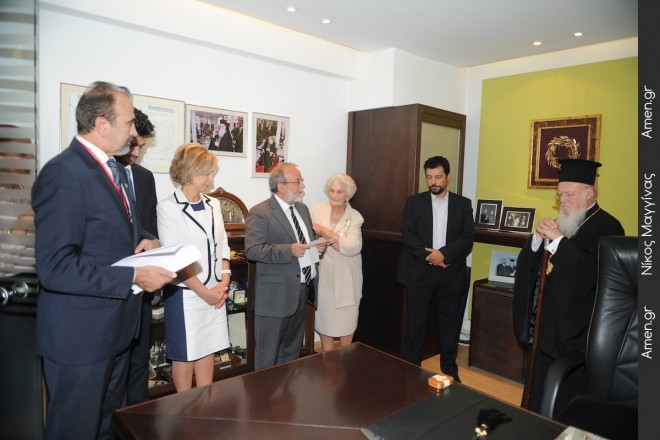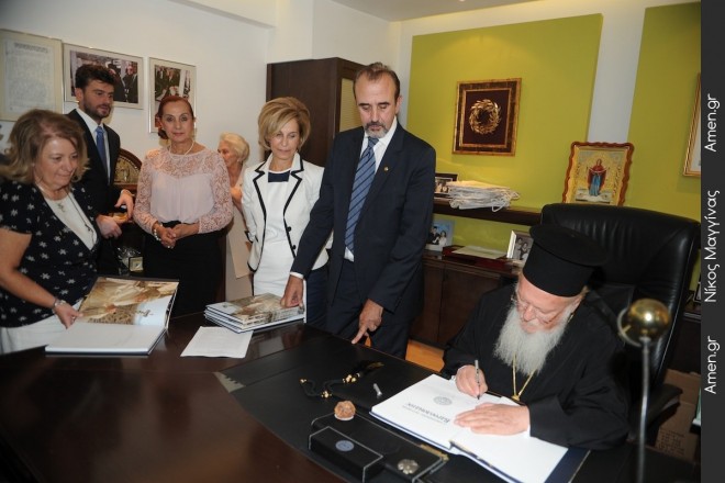 Την έκδοση του πολυσέλιδου λευκώματος για τη ζωή και το έργο του Οικουμενικού Πατριάρχη παρέδωσαν στον Πατριάρχη Βαρθολομαίο,κατά την πρόσφατη επίσκεψή του στην κατοικία τους, το ζεύγος Γιώργου και Αγγελικής Σαρόγλου στην Ξάνθη.
