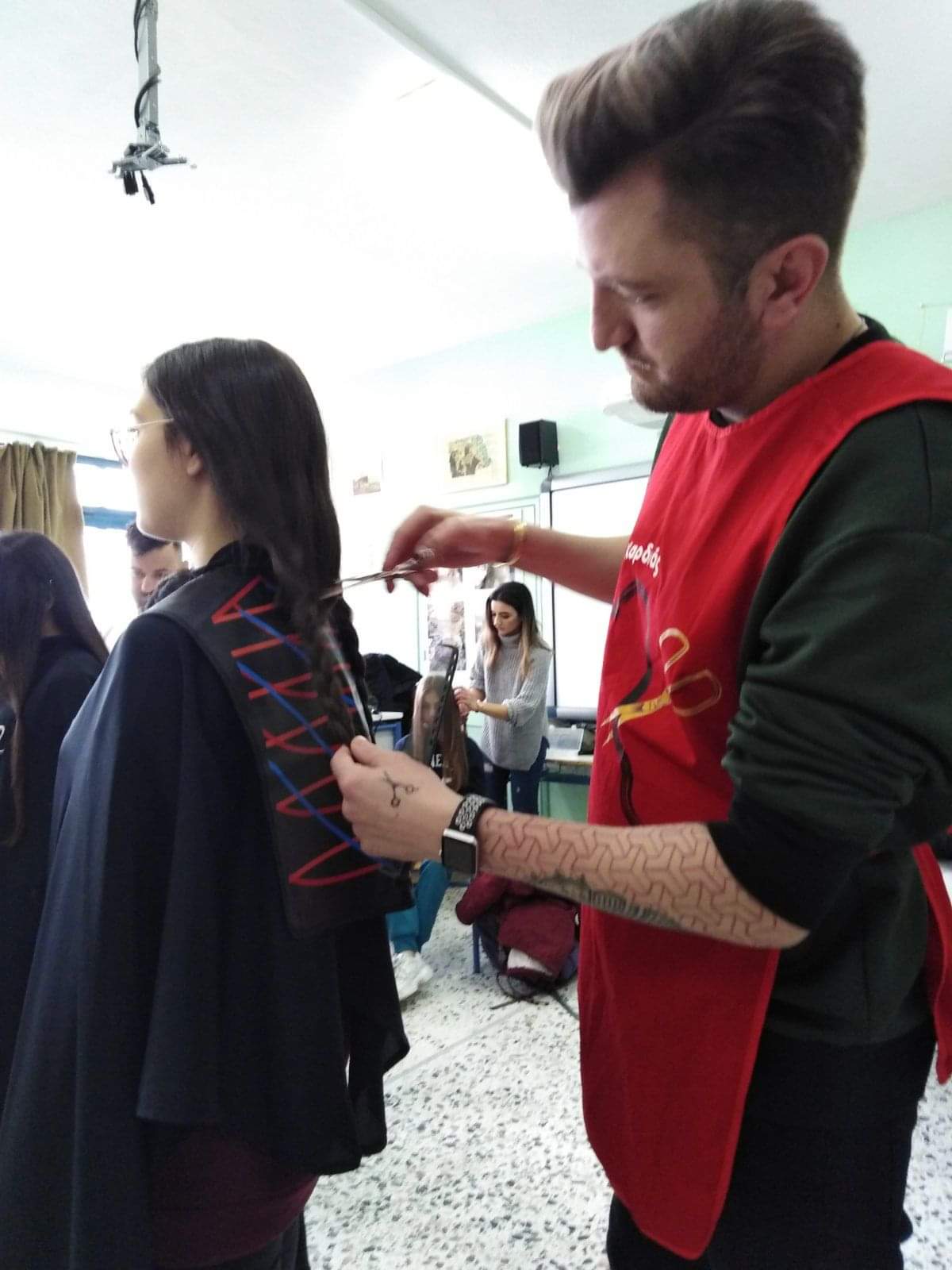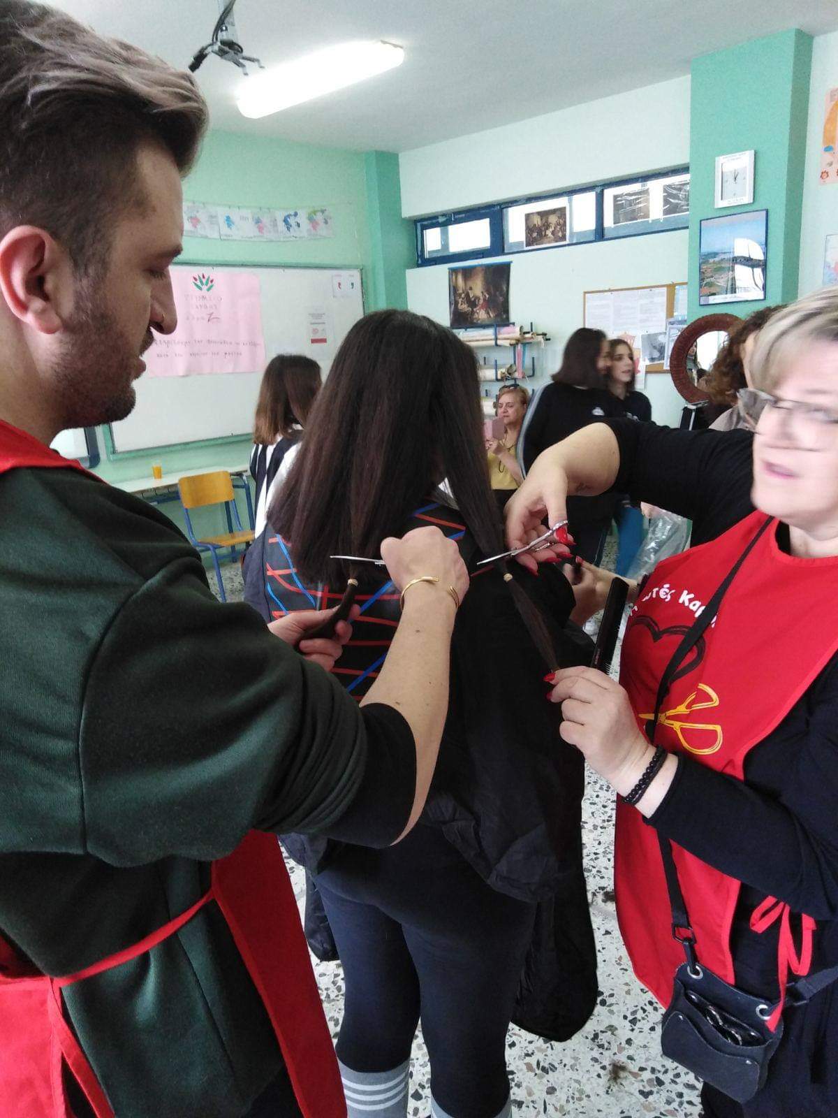 Αρωγός σε αυτή την προσπάθεια στάθηκε η ομάδα «Κομμωτές της καρδιάς» που με τα μέλη της εθελοντικά περιποιήθηκαν και έκοψαν με προσοχή τα μαλλιά των μαθητριών.