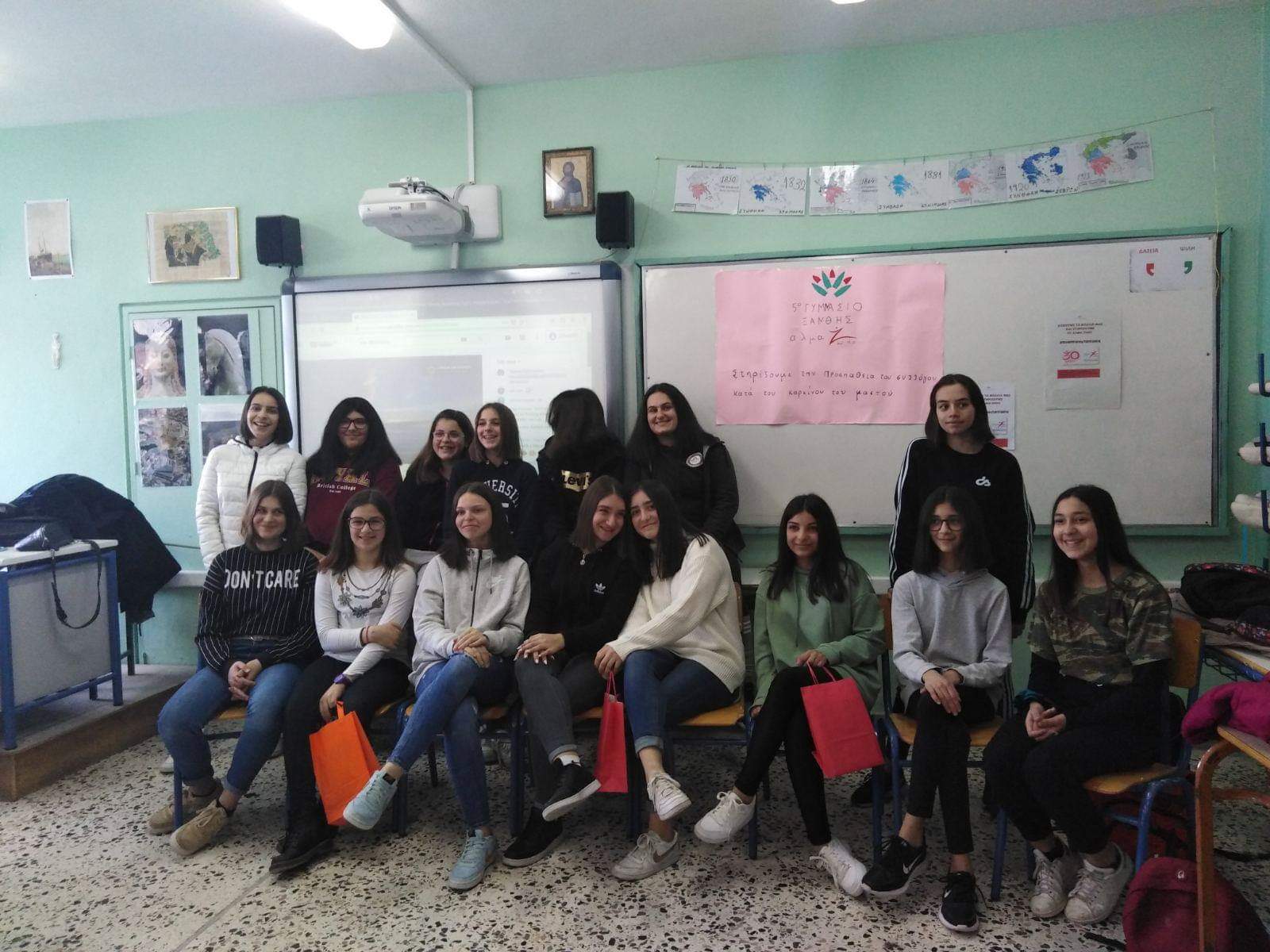 15 μαθήτριες του σχολείου με την παρότρυνση και την καθοδήγηση των εκπαιδευτικών Μ. Λαδιά και Σ. Μακρή έκοψαν και πρόσφεραν τα μαλλιά τους προκειμένου να αποτελέσουν τη βάση για την κατασκευή περουκών για γυναίκες που έχουν χάσει τα μαλλιά τους λόγω πολύ σοβαρών ασθενειών.