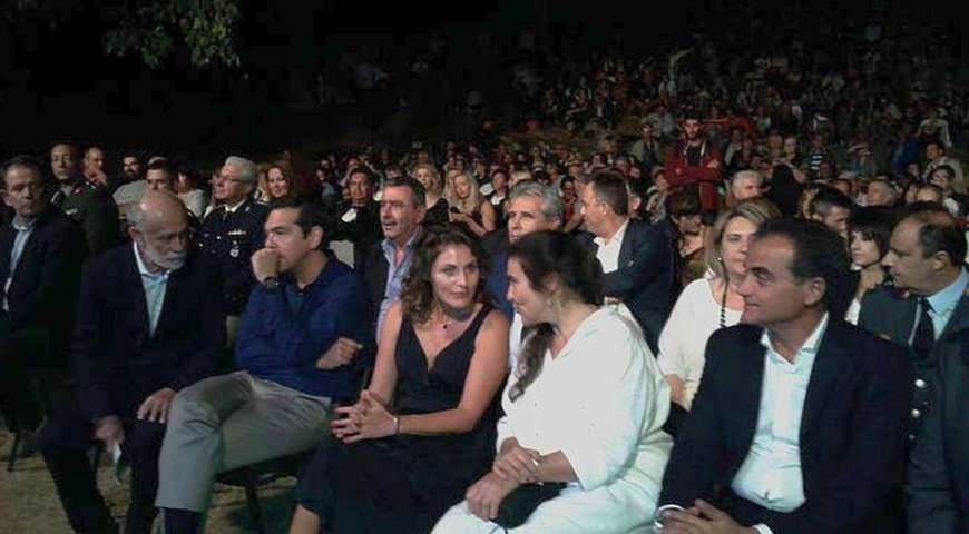 Ο πρωθυπουργός Αλέξης Τσίπρας, ο οποίος παρακολούθησε μαζί με τη σύζυγο του Περιστέρα Μπαζιάνα τη συναυλία-αφιέρωμα στον ποιητή και στιχουργό Νίκο Γκάτσο, με τον Μανώλη Μητσιά και την Καρυοφυλλιά Καραμπέτη, στο νησάκι του Αγίου Αχιλλείου.