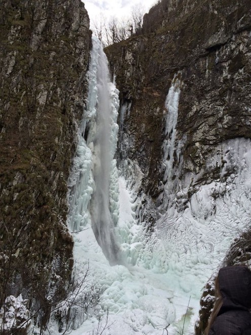 Η πανοραμική φωτογραφία που δημοσιεύεται δείχνει σε όλη του την έκταση το απίστευτο φαινόμενο που παρατηρήθηκε με τον μεγαλύτερο καταρράκτη των Βαλκανίων, να είναι παγωμένος από την κορυφή μέχρι τη βάση του. Επίσης η σειρά από φωτογραφίες στη γύρω περιοχή δείχνουν πως έχει παγώσει και το ρέμα που σχηματίζει ο καταρράκτης, θυμίζοντας εικόνες από το Βόρειο Πόλο.