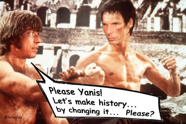 Με αρκετό χιούμορ παρουσίασε διάφορες εκδοχές του Υπουργού Οικονομικών, οι οποίες αναπαράγονται σε όλη την Ευρώπη πλέον. Όχι μόνο με θετικό τρόπο βέβαια, αφού ο Έλληνας Υπουργός φαίνεται πως “τρομοκρατεί” χώρες ή πρόσωπα που έχουν συμφέροντα από την παραμονή στη σκληρή λιτότητα.