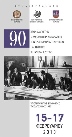 Το τριήμερο 15, 16 και 17 Φεβρουαρίου 2013, με αφορμή τη συμπλήρωση 90 ετών από την σύμβαση περί της ανταλλαγής των Ελληνικών & Τουρκικών Πληθυσμών, 30 Ιανουαρίου 1923-Συνθήκη της Λωζάνης, το Ίδρυμα Θρακικής Τέχνης και Παράδοσης, ο Σύλλογος Μικρασιατών ν. Ξάνθης «Αλησμόνητες Πατρίδες» και ο Σύλλογος Ποντίων ν. Ξάνθης θα οργανώσουν μεγάλο αφιέρωμα με σειρά εκδηλώσεων.