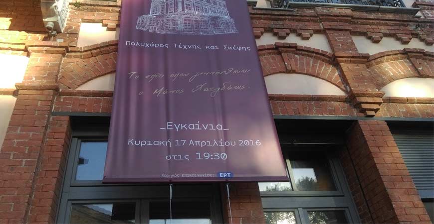 Τα εγκαίνια του «Πολυχώρου Τέχνης και Σκέψης», αποκαταστημένου διατηρητέου αρχιτεκτονικού μνημείου, όπου γεννήθηκε ο μεγάλος δημιουργός Μάνος Χατζιδάκις, θα πραγματοποιηθούν, σε ανοικτή δημόσια εκδήλωση, την Κυριακή 17 Απριλίου 2016, στις 7:30 μετά το απόγευμα, επί της οδού Βενιζέλου 17